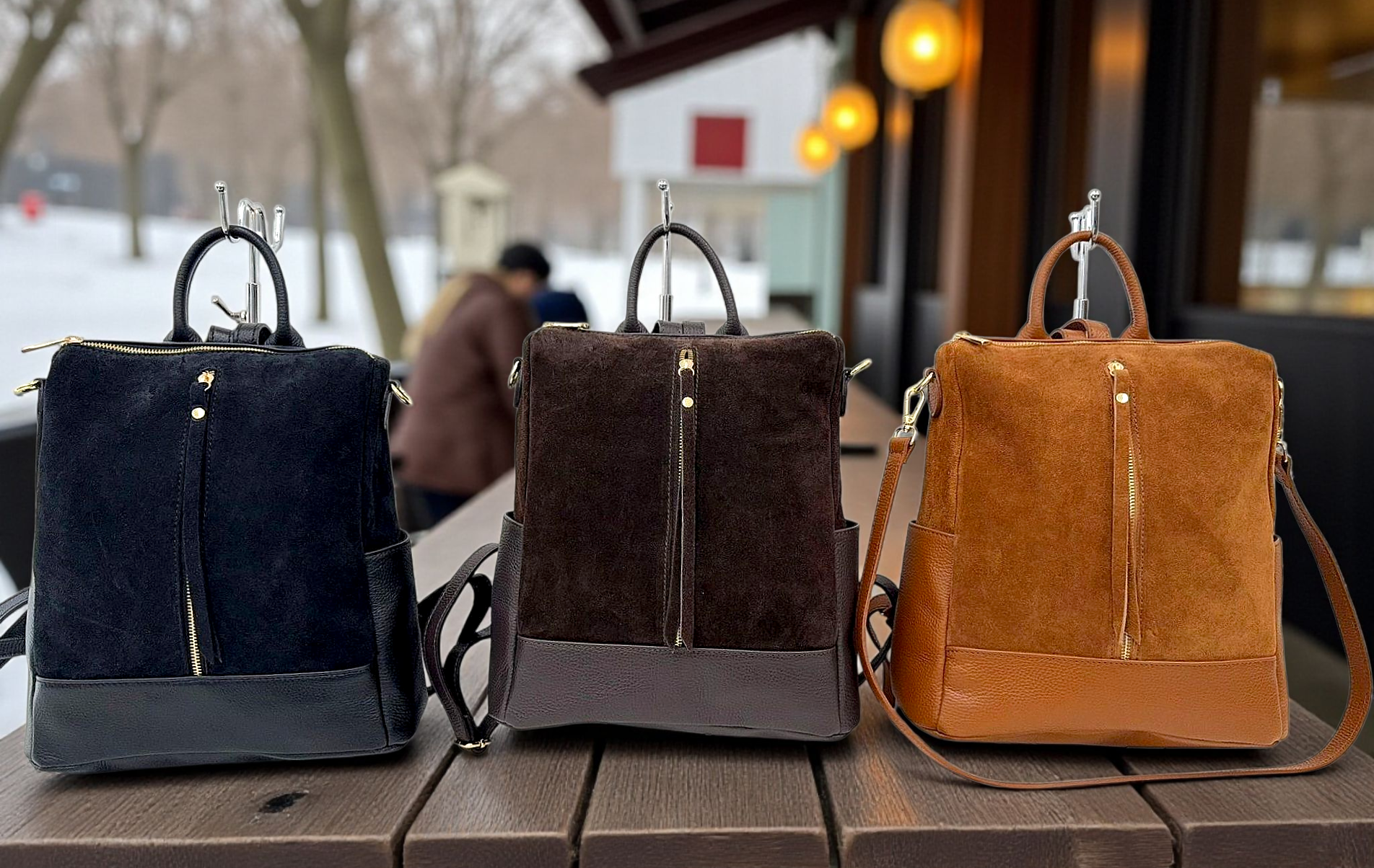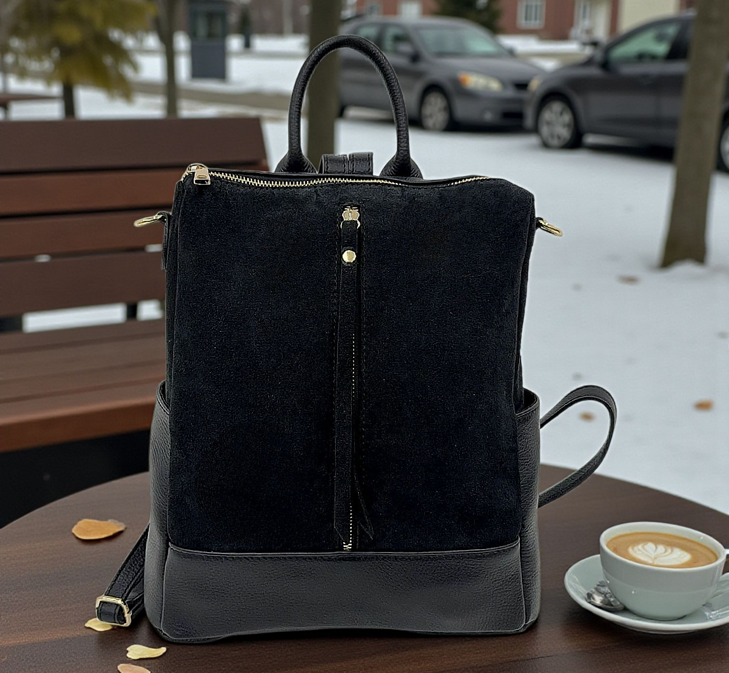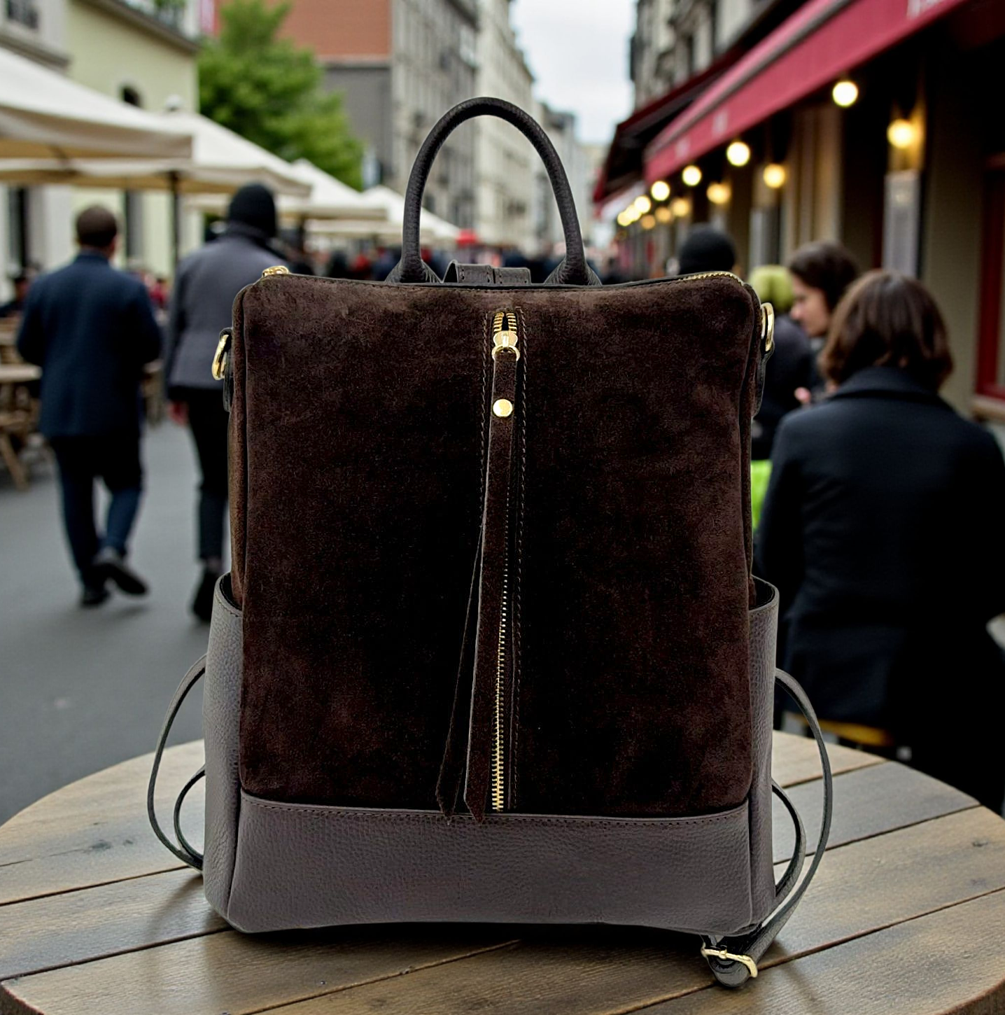 " Andrea " Straordinario Zaino convertibile in Borsa a mano e a tracolla, deciderai tu come usarlo!! In Pelle di Vitello " Dollaro " e in Pelle di Vitello " Nabuk " . Misure: L.30 X H.32 X 14 cm ; Chiusura in alto a Cerniera; Minuterie Color oro; Multi tasca. Troverai 2 Tasche aperte laterali più uno scomparto a cerniera frontale , e l interno è foderato in cotone a scomparto unico con tasca a cerniera. Essendo uno Zaino, nel retro ha i suoi Spallacci Regolabili, ma ha un Manico per portarlo a mano e la tracolla staccabile e regolabile tono su tono in dotazione per portarlo Cross-Body. Adattabile ad ogni Look, lo arricchirà senza dubbio, ma soprattutto amerai la sua comodità e la sua versatilità nel portarlo in ogni modo possibile !! Riceverai " Andrea " dotato di Busta Dust-Bag Antipolvere, cosi da poterlo riporre nel modo corretto e tutelato!