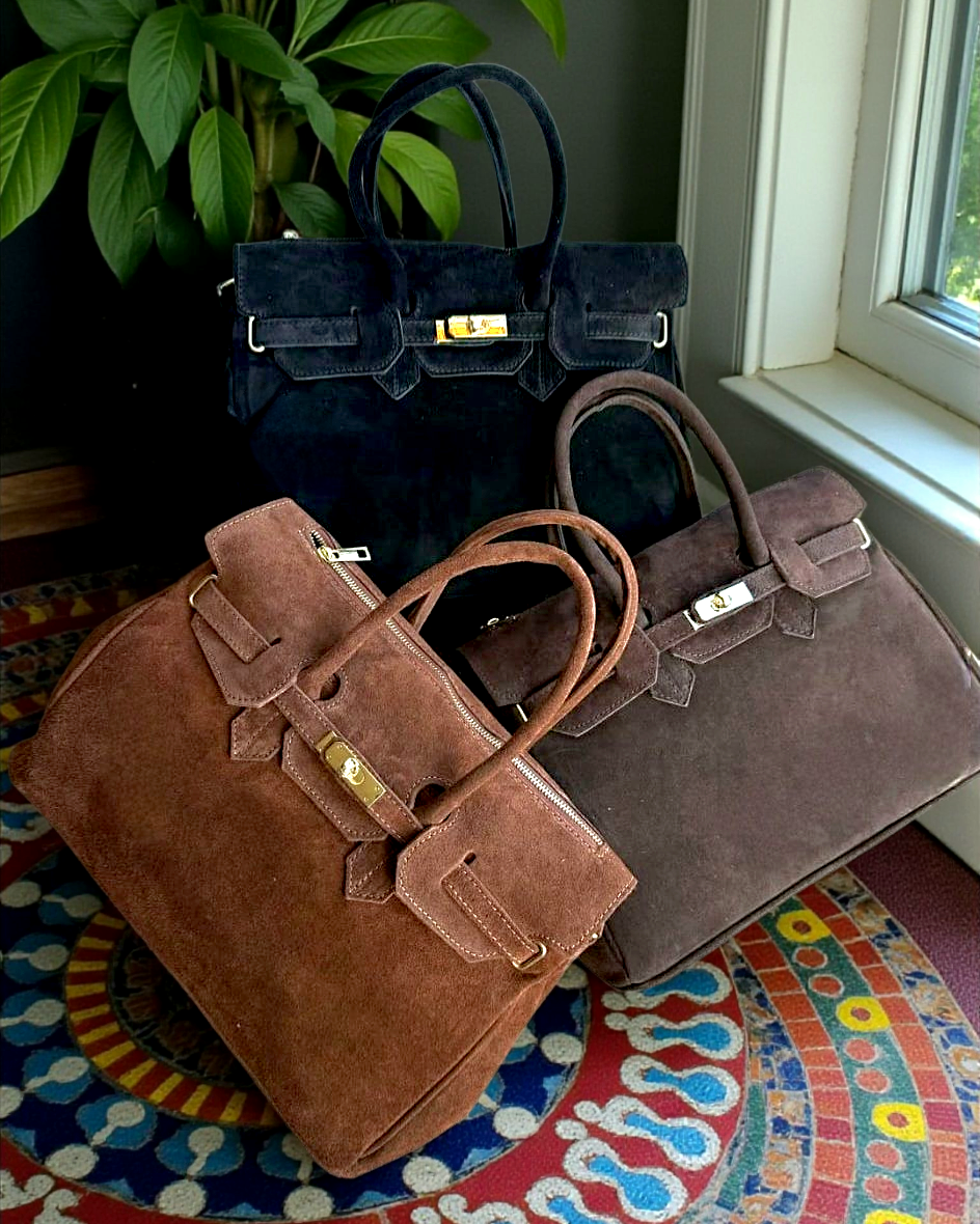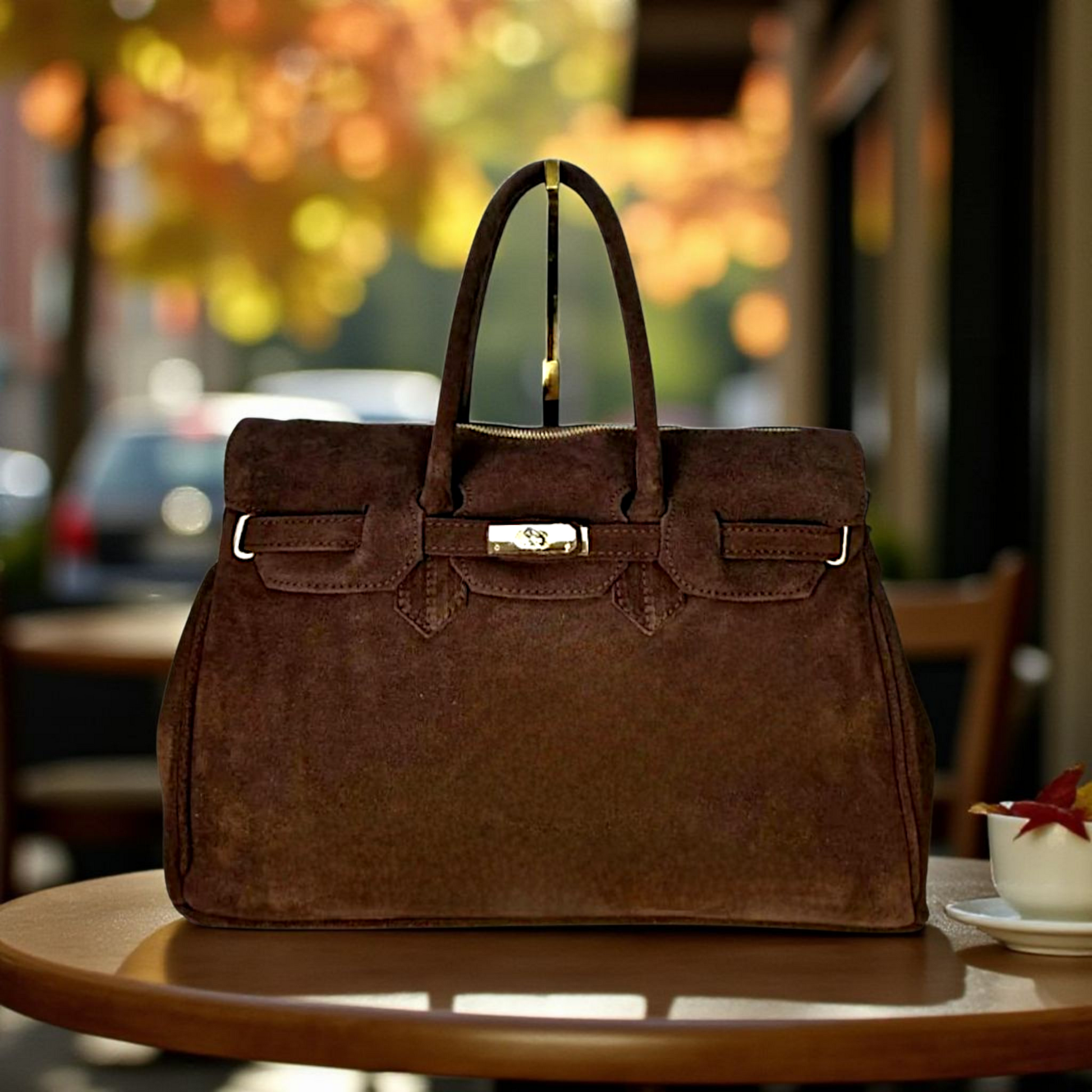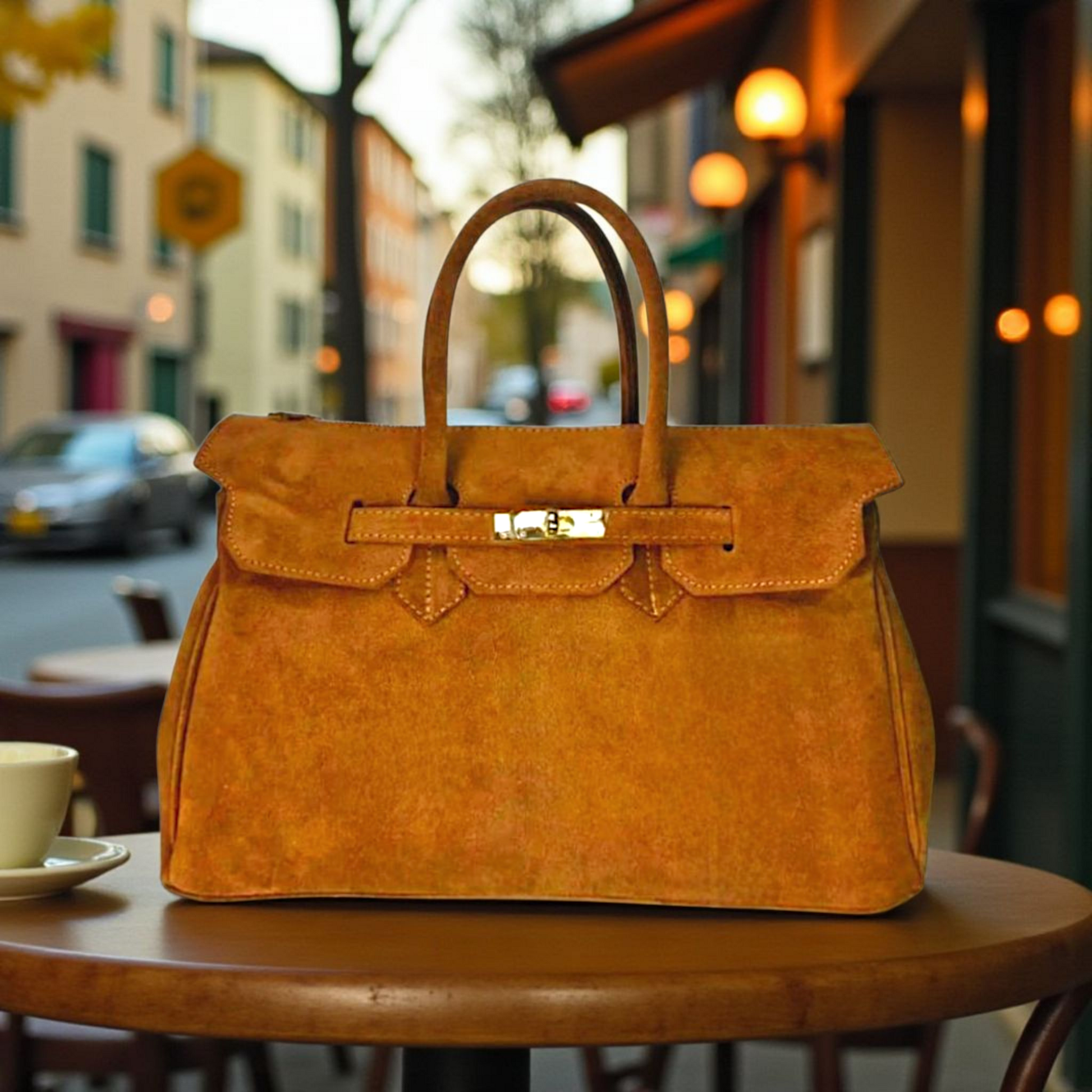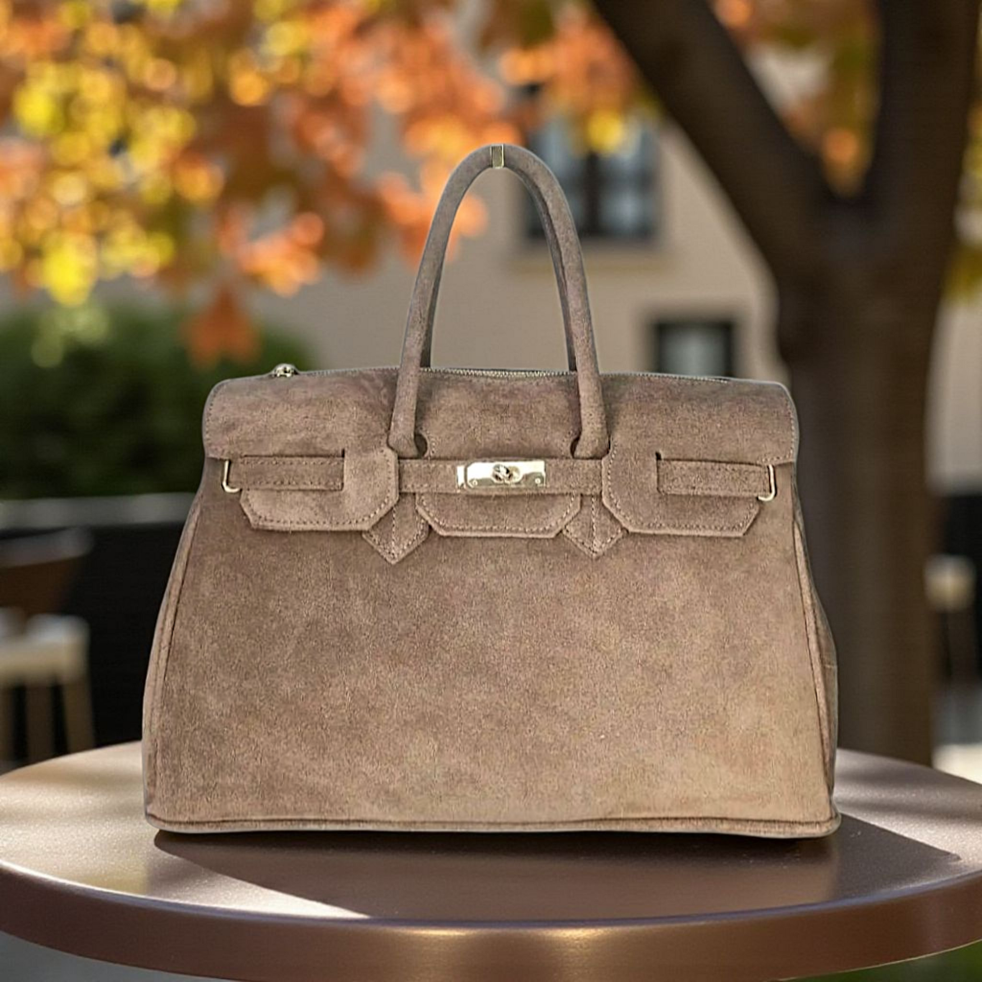 "Milena " Semplicemente Spettacolare!! Ispirata a "Hermès ", elegante ma al contempo anche comoda e versatile, sara' sempre e comunque un' Indiscussa " Protagonista " del tuo Out-Fit!! In Pelle di Vitello " Nabuk "; Misure: L.39 x H.27 X P.18 cm; Doppio manico portabile a mano e tracolla inclusa staccabile e regolabile tono su tono; Doppia apertura, nell' alto a cerniera e frontale con girello; Minuterie color oro; Interno Foderato in cotone a scomparto unico con tasca interna a cerniera. Siamo certi che te ne Innamorerai, e che dopo averla acquistata in un colore, correrai ad acquistarla anche in un altro colore!! Riceverai la tua " Milena " dotata di Busta Dust-Bag Antipolvere, così da poterla riporre nel modo corretto e tutelata!!