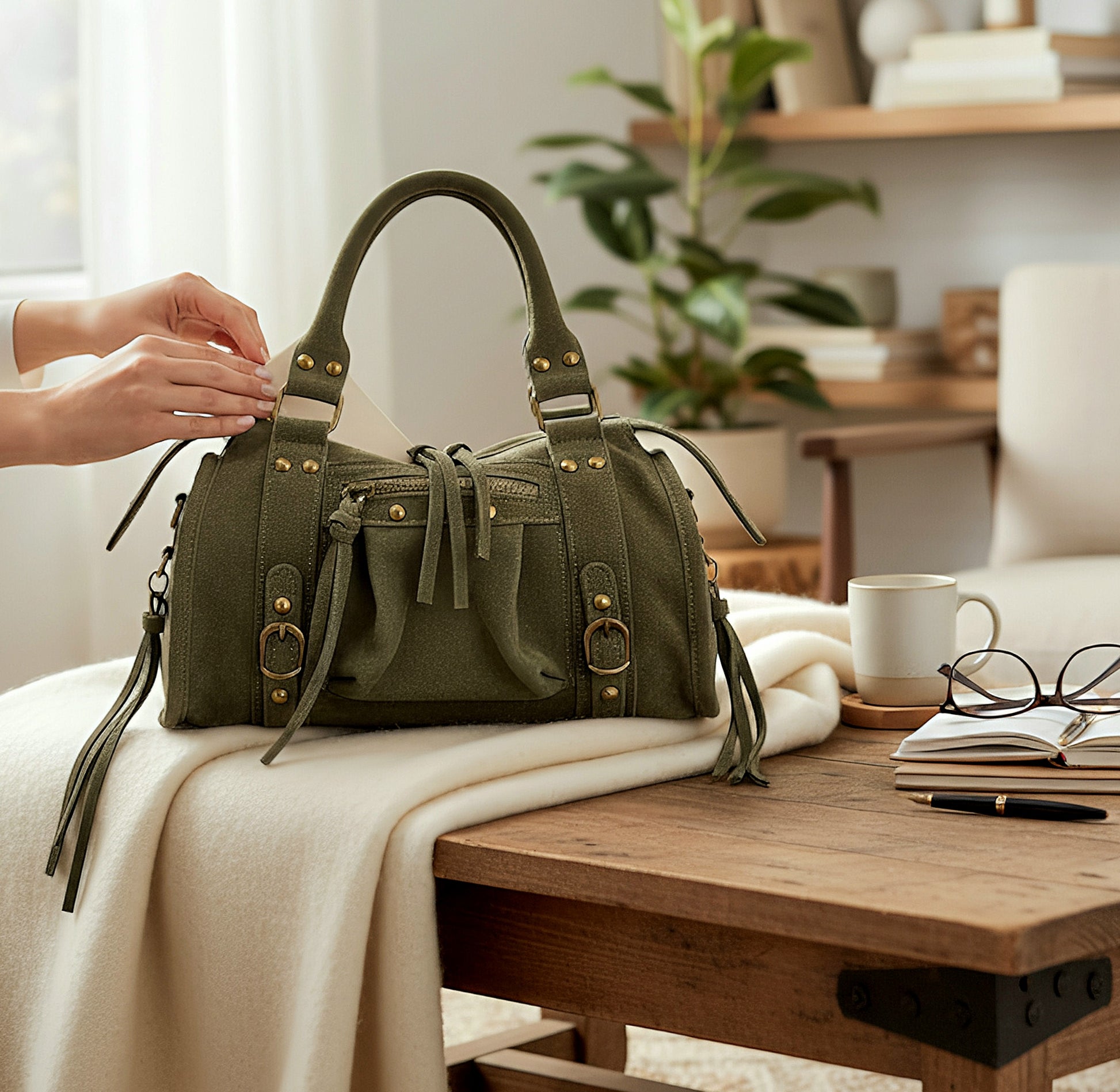 " RORY MIDI NABUK " Edizione Limitatissima!! Un " MUST HAVE " della Nostra Collezione, NON SBAGLIA MAI!! Disponibile anche nella Versione " Big " e in altre Varianti di Pelle! Rifinita e Curata con particolare attenzione in ogni suo dettaglio!! Misure: L.25 X H.17 X P.12 cm ; Chiusura a Cerniera, Minuterie Ottone Vintage; Doppio Manico lavorato a treccia intarsiata, appendici e Borchie Decorative ; Interno Foderato in Cotone a scomparto unico , con tasca interna a cerniera e tasca aperta dal lato opposto; tracolla staccabile e regolabile inclusa. Sul fronte esternamente, altra tasca con cerniera. Un Modello che ormai domina i nostri out- fit , senza esclusioni !! Affrettati è a Edizione Limitatissima!!! Riceverai la tua " RORY MIDI NABUK " dotata di Busta Dust-Bag Antipolvere, cosi da poterla riporre nel modo corretto e tutelata!!